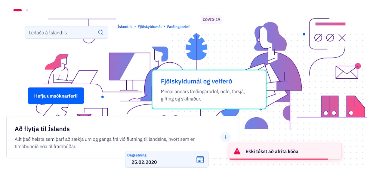 The Icelandic government has stated its intention to be at the forefront of digital services, and that the primary point of contact between the government and its citizens will be digital. For the citizen, this means easier access to services and being able to self-service at their own convenience — a drastic improvement on the experience of having to drive all over town during office hours to fill out forms and deliver documents.