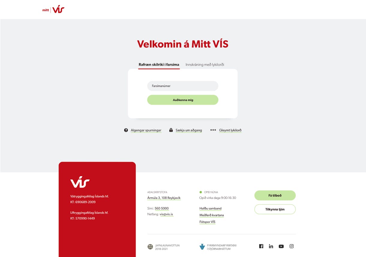Mitt VÍS (My VÍS) is the foundation platform of the company’s digital services. The project is large in scope and we work in close collaboration with VÍS using 16-week development cycles.